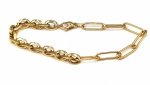 Wydłużone i pogrubione ogniwa nadają konstrukcji solidnej formy, a dwa dodatkowe moduły ozdobione cyrkoniami dopełniają elegancji projektu.