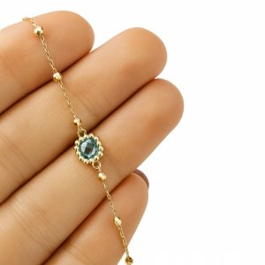 Bransoletka markiza niebieski kamień złoto 585