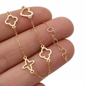 Bransoletka z motywem serca i koniczyny złoto 585
