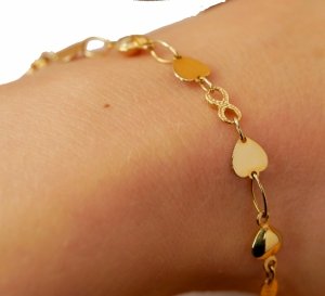 Bransoletka 19cm serca 3D ogniwa złoto 585