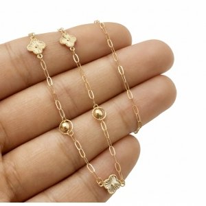 Naszyjnik z motywem koniczyny i kulami złoto 585