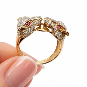Pierścionek dwie głowy tygrysa złoto 585