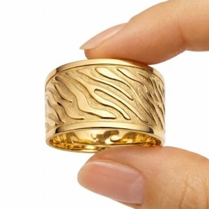 Szeroki pierścionek z rzeźbioną fakturą R.13 złoto 375