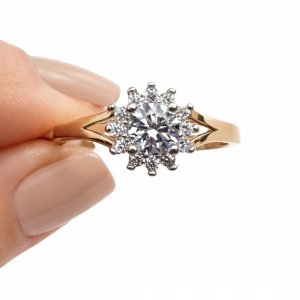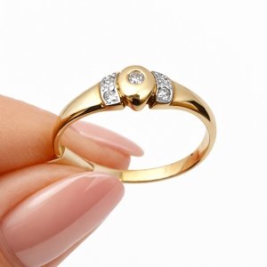 Pierścionek R.19 diamenty naturalne złoto 585