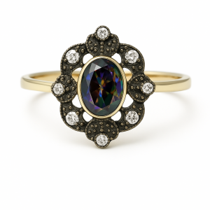 Pierścionek R.19/20 Markiza czarna złoto 585