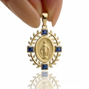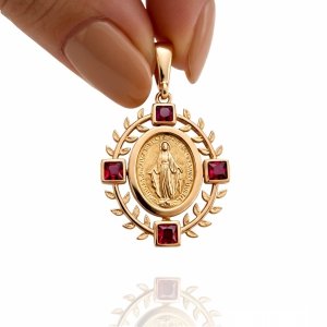 Zawieszka cudowny medalik z rubinowymi kamieniami złoto 585