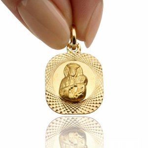 Medalik w formie kwadratu Matka Boska z Dzieciątkiem złoto 585