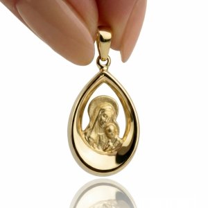 Medalik w formie kropli Matka Boska z Dzieciątkiem ze złota 585