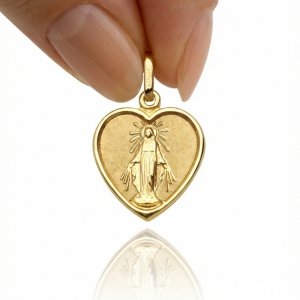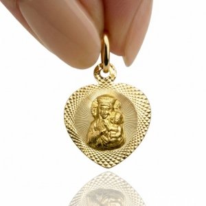 Medalik serce grawerowane z wizerunkiem złoto 585