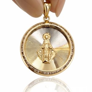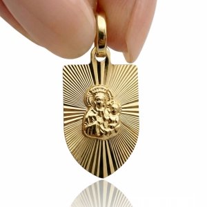 Medalik grawerowany w formie tarczy z wizerunkiem złoto 585