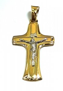 Krzyż przestrzenny białe i żółte złoto 585
