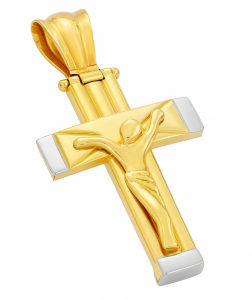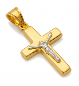 Krzyż dwukolorowy z wizerunkiem Chrystusa złoto 585