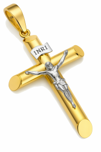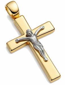 Krzyż dwukolorowy z wizerunkiem złoto 585