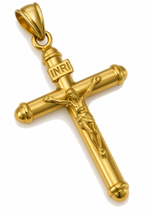 Wisiorek krzyż z wizerunkiem sztabki kolor złoto 585