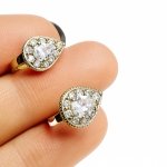 Kolczyki prezentują elegancką formę podwójnych konturów kropli, subtelnie zdobionych białymi cyrkoniami, które nadają biżuterii wyjątkowego blasku i świetlistości.