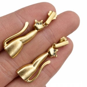 Kolczyki pozłacane sztyft wiszące koty art srebro 925