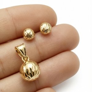 Komplet wisior i kolczyki kule złoto 585