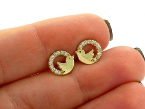 Kolczyki sztyfty jaskółki w kole złoto 585