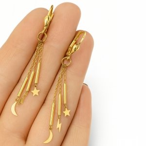 Kolczyki łańcuszki serce gwiazda złoto 585