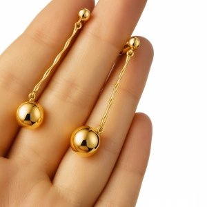 Kolczyki długie spirala z kulą 3D złoto 585