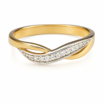 Pierścionek wstęga R.16 biały kamień złoto 585