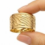 Dolny pas zdobiony rzędem białych kamieni osadzonych w oprawie pavé, górny natomiast polerowany na wysoki połysk.