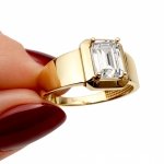 Konstrukcja pierścionka została zaprojektowana z dbałością o proporcje, dzięki czemu całość prezentuje się solidnie i estetycznie.