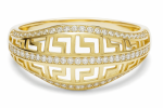 Całość wykończona na wysoki połysk podkreśla elegancję złota i wydobywa blask kamieni, tworząc spójną, wyrazistą kompozycję o silnym charakterze.