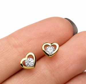 Kolczyki sztyft serce kontur z oczkiem złoto 585