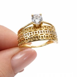Pierścionek z kamieniem o szlifie brylantowym R.18 złoto 585