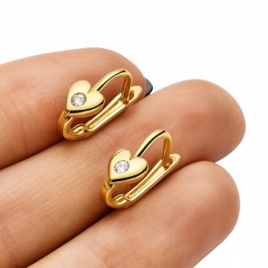 Kolczyki pełne serduszko z białym oczkiem złoto 585