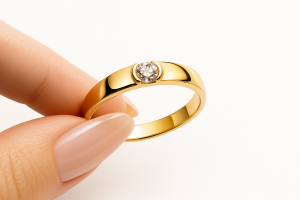 Pierścionek z gładką obrączką i kamieniami złoto 375