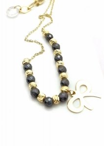 Naszyjnik paciorki z kokardą złoto 585