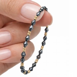 Bransoletka ze złotymi kulami i hematytem złoto 585