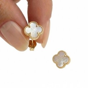 Kolczyki koniczyny sztyft z masą perłową złoto 585