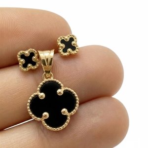 Komplet kolibry kwarc dymny diamenty złoto 585
