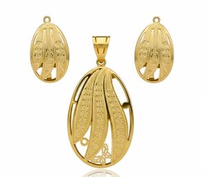 Komplet kropla ażurowa kolczyki i wisior złoto 585