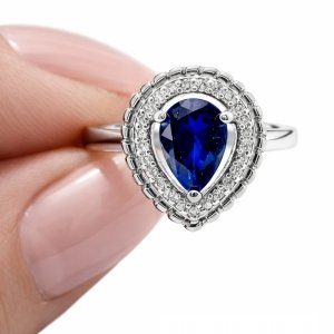 Pierścionek z naturalnym szafirem srebro 925 ROD