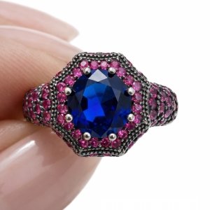 Pierścionek z kamieniami srebro 925 ROD i OKSYD