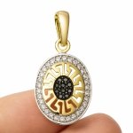 Brzegi medalika zostały ozdobione białymi cyrkoniami, podkreślając szlachetność złota oraz harmonijną proporcję całości.