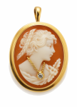 Wyjątkowa zawieszka w formie kamei zachwyca misternym odwzorowaniem wizerunku i niezwykłą precyzją detali.